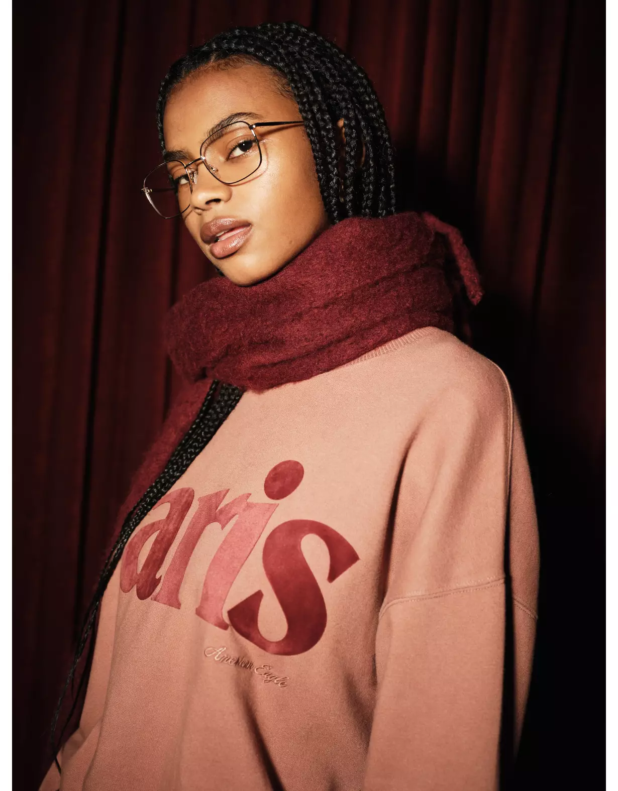 A fashionable, non-prescription pair of glasses offering blue light protection.